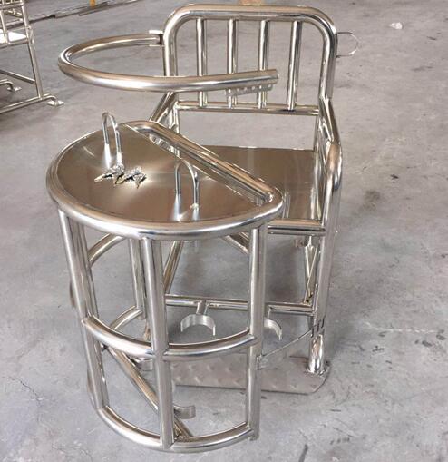 本产品匀选用标号为国*标201优*质不锈钢材料,包括靠背、座面、椅腿、扶手及胸部约束环另外包括座椅前设有整体弧形开关装置。其桌面上方装有U型锁具,方便约束其手腕。椅腿下方装有直接与地面固定底盘。