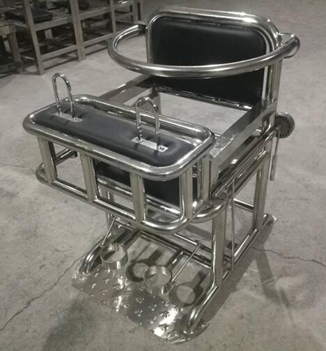 材质: 管壁厚度为贴标2.0mm工业管制成;座面不锈钢板厚度为贴标1.5mm制成;桌面不锈钢板厚度为贴标1.5mm制成;扶手不锈钢管厚度为贴标2.5mm;工业不锈钢管制成;伸缩腿为不锈钢管壁厚度为贴标1.5mm;脚部约束环采用5.0mm工业不锈钢板制成.。