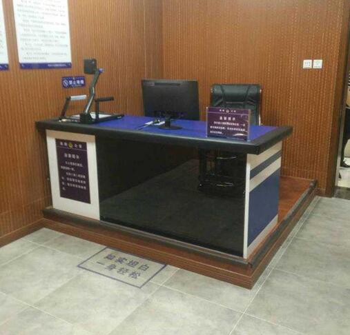 采用高密度板贴实木皮,颜色采用公*安jing用蓝,蓝白相间,严肃认真。