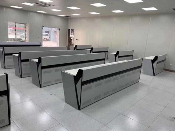 操作台每联单位尺寸为600×900×750,台面为密度板,下柜深度640mm,标配可调节层板一块,承重200kg.