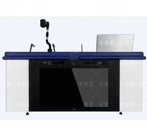 桌体配有两个键盘抽板,桌体正前方可加装21.5寸电脑显示器或液晶电视,可配置电脑升降器、控制面板等;方便提示xian yi人须知问题;北京安智盈科技有限公司集成桌体前方可加装显示器,底漆采用环保油漆,整体组装方便快捷。一体化智能集成桌将讯问过程中需使用的多种讯问设备设置于桌体内部,保证了桌面的整洁有序,电脑升降器使用时一键启动,自动延伸至桌面上,安全可靠还可起保密作用使用完毕后退回至桌面内部隐藏起来,流线型桌体设计,应用可与各种品牌电脑配套使用。、