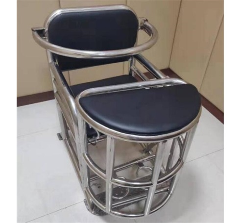 3、结构:讯问椅由座板、靠背、台板、扶手、腰环、脚环等组成,台板下方为笼式框架,与台板成一体,可限*制目标人腿部运动范围,腰部有不锈钢约束环。靠背、座板、台板用海绵覆皮革成软包。椅腿下方装有直接与地面固定底盘。
