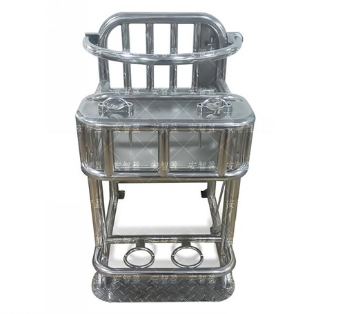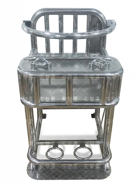 材质: 管壁厚度为贴标2.0mm工业管制成;座面不锈钢板厚度为贴标1.5mm制成;桌面不锈钢板厚度为贴标1.5mm制成;扶手不锈钢管厚度为贴标2.5mm;工业不锈钢管制成;伸缩腿为不锈钢管壁厚度为贴标1.5mm;脚部约束环采用5.0mm工业不锈钢板制成.。