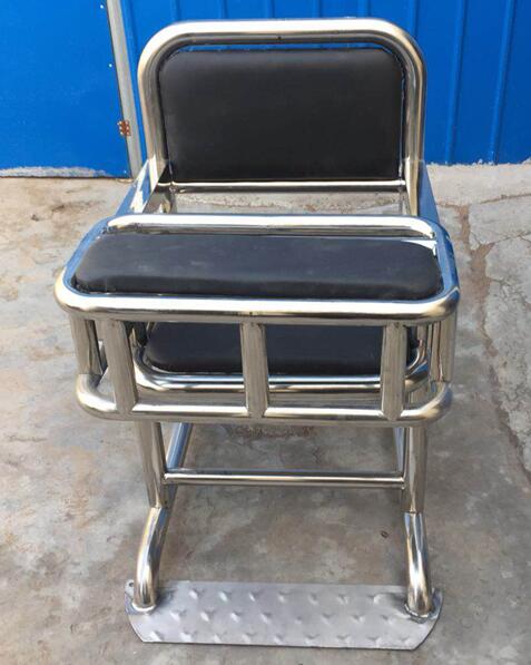 材质: 管壁厚度为贴标2.0mm工业管制成;座面不锈钢板厚度为贴标1.5mm制成;桌面不锈钢板厚度为贴标1.5mm制成;扶手不锈钢管厚度为贴标2.5mm;工业不锈钢管制成;伸缩腿为不锈钢管壁厚度为贴标1.5mm;脚部约束环采用5.0mm工业不锈钢板制成。