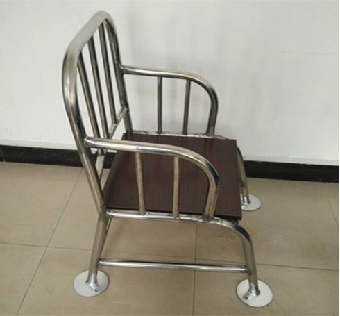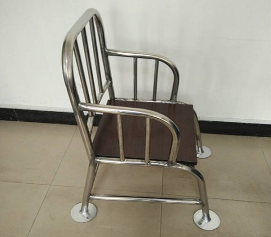 此款椅子分为铁质和不锈钢两种材质,此款不锈钢材质,脚底可于地面固定