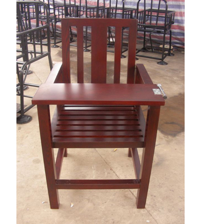 产品特点:木制审讯椅(仅木板下有一小锁),橡木制作(靠背上端两角及前方木板已改为圆角),脚部留有膨胀丝孔,可固定于地面,发货时多层包装,能保证an全到达,常有现货。