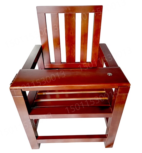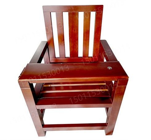 1.结构:讯问椅由座板、靠背、台板、扶手等组成。靠背、扶手、等相互连接牢固;台板一端通过铰链与扶手连接,另一端通过底部舌簧锁与另一扶手锁定,铰链转动灵活,无卡滞、锈蚀等现象;