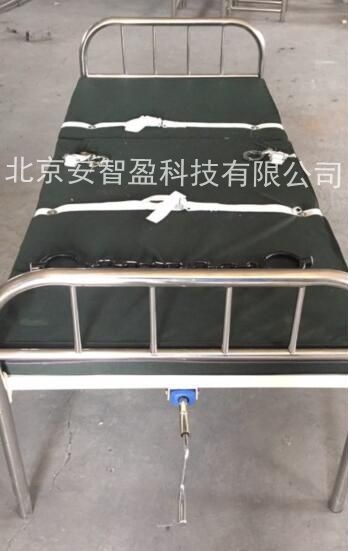 不锈钢材料制作,身和腿部可调节角度,设计比较人性化,既舒服又不易逃脱。 床体采用高频型焊接成型,结构合理、坚固耐用。约束床可固定四处,即:手部,脚部,腰部和胸部,床上有手*铐和约束带。