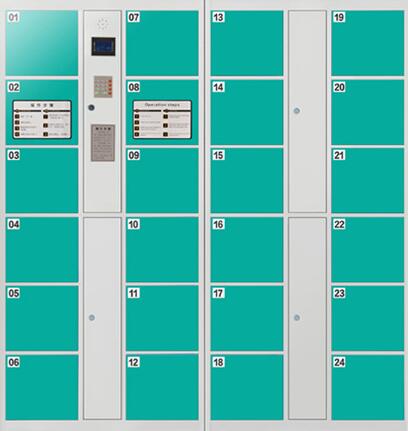 24门存包柜:整体尺寸:高1800×宽1700×460mm 单门:270×300×460