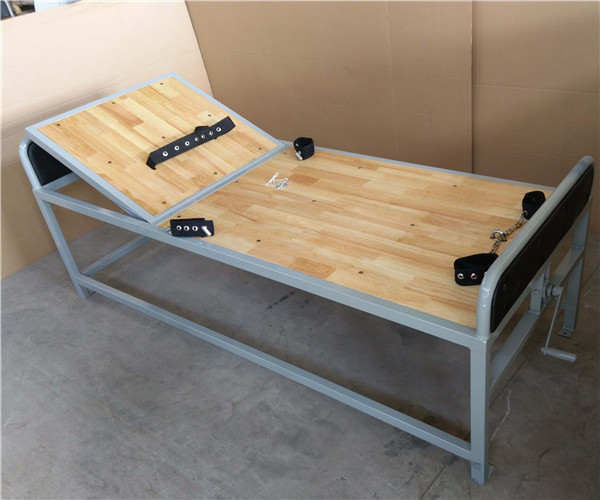 此款约束床,可限制精神病人或犯人的上肢和下肢伸展,避免对其他人员造成伤害,结构简单、容易操作,设计人性化,床面上都有束缚带,可防止捆绑过紧使皮肤受到伤害。