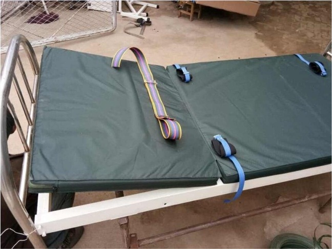 不锈钢材料制作,身和腿部可调节角度,设计比较人性化,既舒服又不易逃脱。 床体采用高频型焊接成型,结构合理、坚固耐用。