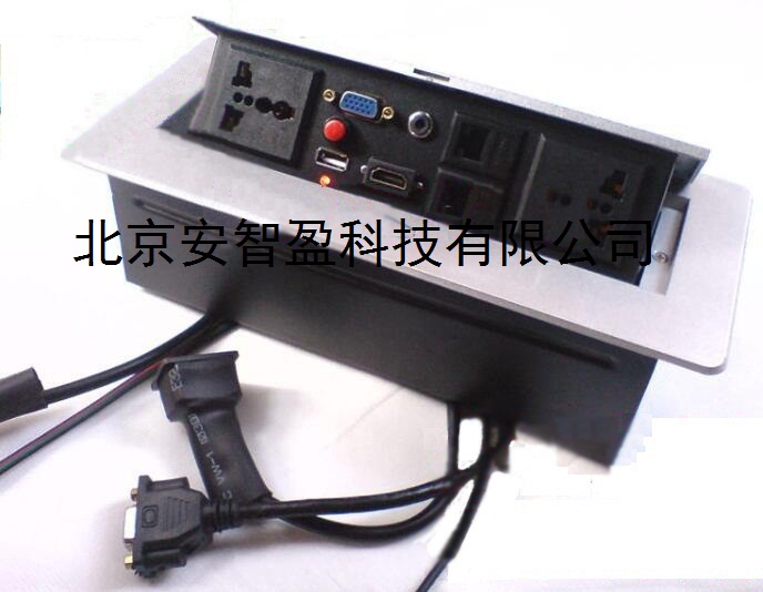 配置: 二个多功能三孔电源插座接口、一个2.0带充电功能接口、一个VGA(D-sub)接口、一个多媒体高清HDMI接口、一个3.5mm立体声耳机音频接口、一个RJ11电话语音(可换RJ45网络)接口、一个RJ45网络接口、一个开关接口(内置功能可根据客户实际需要改动或定做)