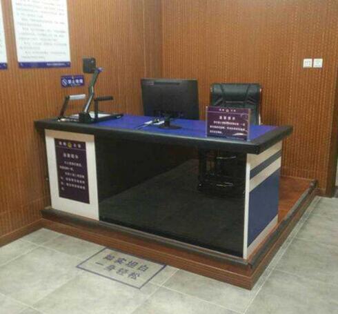 采用高密度板贴实木皮,颜色采用公*安jing用蓝,蓝白相间,严肃认真。