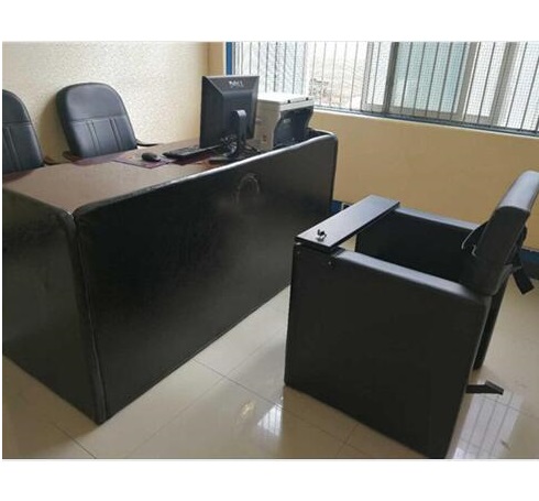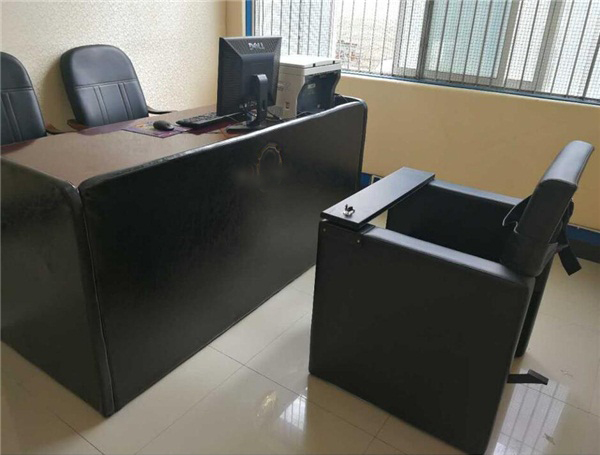 优*质西皮饰面,皮面柔软舒适手感好,耐磨、耐老化,抗静电,透气;整体设计简约。款式新颖,可定制,适合现代审讯室设计和风格。