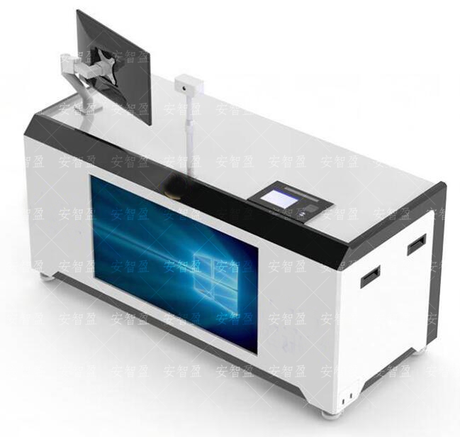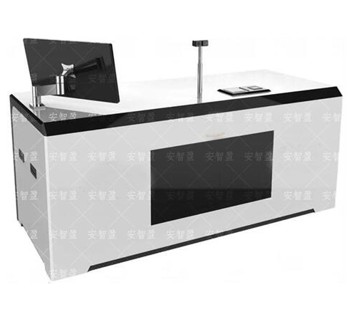 桌子上面可安装电脑、摄xiang头,桌子前面可加显示器、徽章、射灯,可加字。