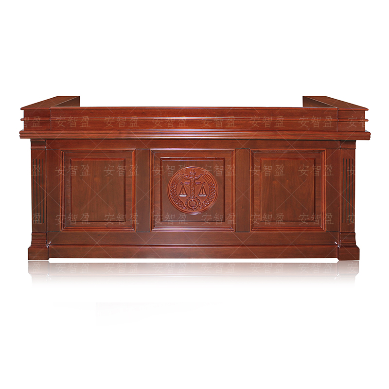 4、装饰:前挡装饰板带3个凹凸方块图案,中间浮雕为模拟人民法院标志由麦穗、齿轮华表、天平、红旗组成,轮廓清晰可见,主腿是凹凸方块。