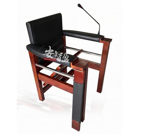 椅子采用实木支架,基材采用全实木,经高温沸煮及脱水达到定型后不开裂,不变形。面板油漆采用环保油漆,达到环保标准。桌面、扶手、靠背处西皮软包装,采用优*质皮革耐磨性能好,防撞。前面可打开,旁边有小锁。扶手处安装固定式的万向扩音设备。