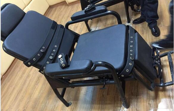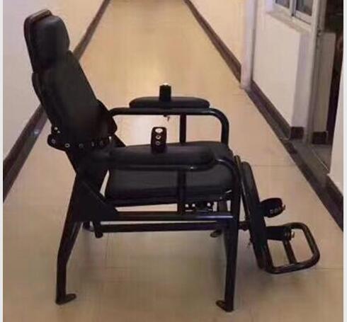一款新型醒酒椅,手部,脚部,胸部,腿部分别设有约束带,约束带采用磁扣式约束带,被醒酒人员不易划伤和脱落,方便办案人员开启,可躺角度150度左右,脚部采用人性化设计,可把脚放在上面慢慢躺下。加装了头部位置,比普通醒酒椅更加人性化,腿部可加装膨胀螺丝固定地面