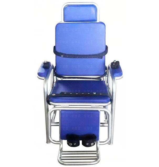 一款新型醒酒椅,手部,脚部,胸部,腿部分别设有约束带,约束带采用磁扣式约束带,被醒酒人员不易划伤和脱落,方便办案人员开启,可躺角度150度左右,脚部采用人性化设计,可把脚放在上面慢慢躺下。加装了头部位置,比普通醒酒椅更加人性化,腿部可加装膨胀螺丝固定地面