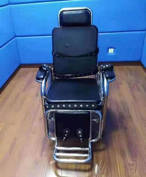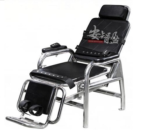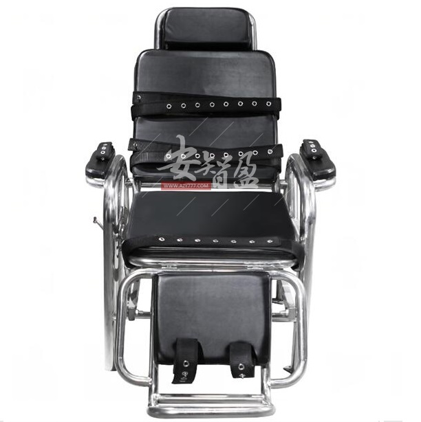 一款新型醒酒椅,手部,脚部,胸部,腿部分别设有约束带,约束带采用磁扣式约束带,被醒酒人员不易划伤和脱落,方便办案人员开启,可躺角度150度左右,脚部采用人性化设计,可把脚放在上面慢慢躺下。加装了头部位置,比普通醒酒椅更加人性化,腿部可加装膨胀螺丝固定地面