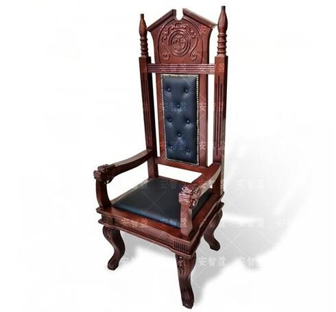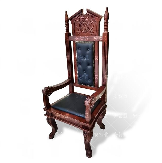靠背及坐垫:采用软包工艺。靠背上部中间为实木雕刻天平图案装饰构件、靠背上部两侧采用实木栏杆式装饰构件。