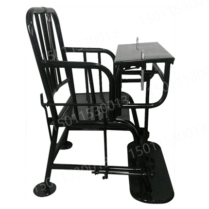新型审讯椅采用上层铁艺,座椅前端设有方形小桌整体开关的一些装置,下部设有腿部固定装置,靠背带有约束带,固定安*全可靠,全缝焊接,坚固耐用。表面利用重型烤漆,外型美观、经久耐用。具有头、手、脚、身的一体防御功能,既有效防止嫌疑人的反抗、脱逃、自残等行为发生,又保证了审讯人员在工作过程中的人身安*全。