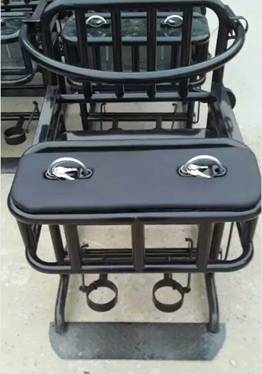 此款铁质审讯椅,采用优*质铁管制作而成,结实耐用,桌面、靠背、坐垫处采用西皮软包,桌面也是钢板制成,无棱角更安*全,手部采用优*质的U型锁,椅子可固定与地面上。